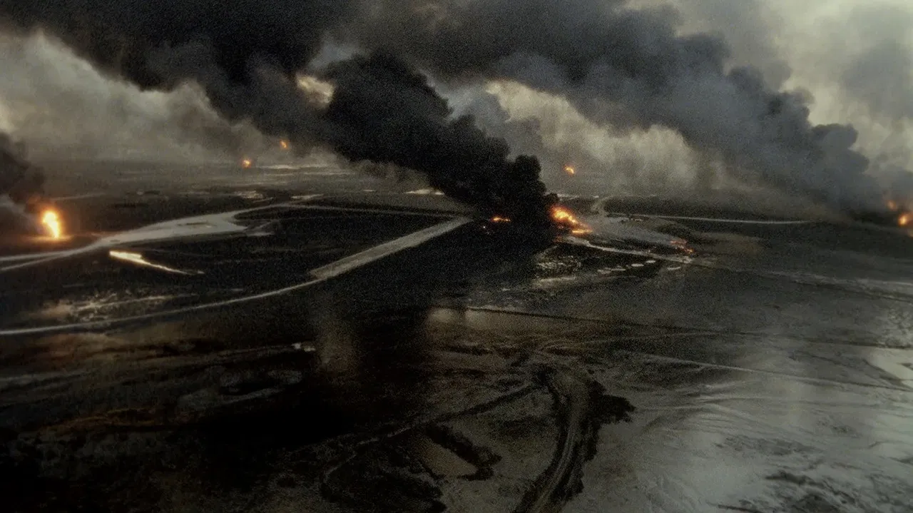 Pouco depois da Guerra do Golfo, incêndios em poços de petróleo estavam devastando todo o Kuwait. Na semana anterior à extinção desse mar de fogo, Werner Herzog filmou essa paisagem apocalíptica, com seus céus turvos, terra queimada e chamas caprichosas.
