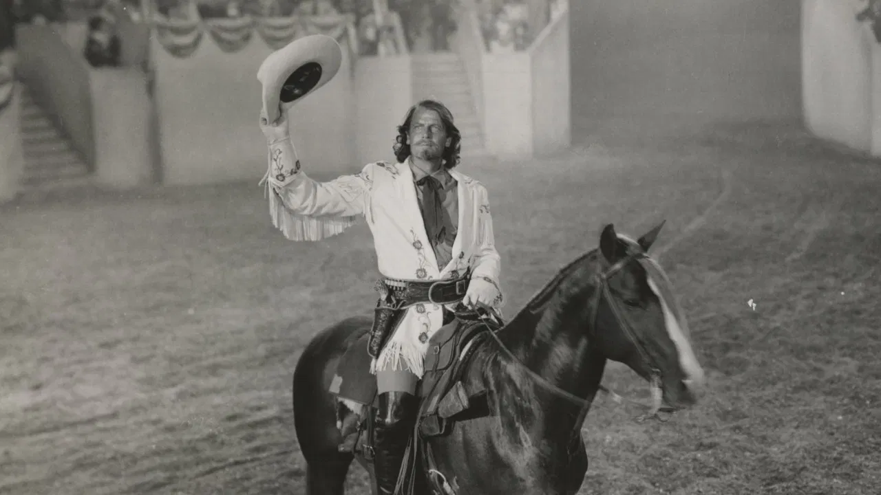 1944 / 1 hr 30 minEm 1877 um homem cavalgava pelo oeste e, da noite para o dia, tornou-se célebre. Não descobriu um continente, nem venceu uma guerra. Não foi um grande general, estadista ou cientista, ainda assim após várias décadas as lendas sobre ele continuam tão vivas quanto em sua época. Seu nome era William Frederick Cody, mas para os jovens e velhos, ricos e pobres, reis e plebeus, era conhecido como Buffalo Bill. Ele começou a construir sua fama quando era batedor, por ter uma pontaria infalível e, ao defender uma diligência que fora atacada por índios bêbados, ter salvo Louisa Frederici , a filha de um senador. Cody não queria matar e ansiava pelo estabelecimento de uma co-existência pacífica entre os brancos e os índios. No entanto esta era uma tarefa difícil, pois um ambicioso empresário, Vandevere, só queria ter cada vez mais lucro, não se importando em tirar os índios das suas terras ou promover a matança indiscriminada de búfalos.