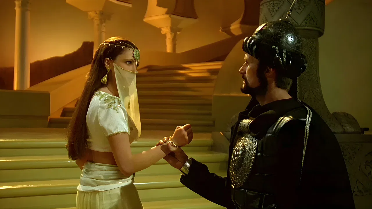 1979 / 0 hr 1 minUm califa malvado (Christopher Lee) oferece a mão de sua filha em casamento a um príncipe se ele puder completar uma busca perigosa por uma rosa mágica. Ajudado por um menino e um tapete mágico, o Príncipe Hasan (Oliver Tobias), tem que superar gênios, monstros cuspidores de fogo e pântanos traiçoeiros para alcançar seu prêmio e reclamar a mão da Princesa Zuleira (Emma Samms).